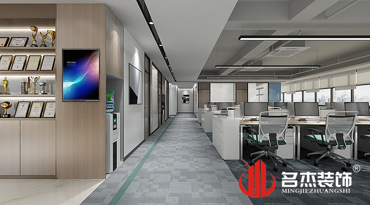 设计团队根据行业特性和企业需求,将企业文化和品牌意识融入到整个装修设计的环节当中。整体设计风格是现代简约风格,利用简约的时尚元素进行合理的搭配,让空间中透露出一丝丝时尚且优雅的气息。同时传统的黑白灰色调作为主色调,在加入原木色调作为点缀色,也能很好的表达出绿色环保的设计要素。
