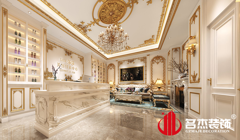 在整体的设计当中,设计团队以现代奢华的风格来作为这次的主打风格,以金色作为改纤体中心的点缀色,而且不同造型上使用的颜色也是金色,让空间充满这一种奢华的感觉。在灯具的使用上也是按照奢华的路线走,水晶吊顶,壁灯,营造出优雅、富丽的氛围。#美容装修设计#