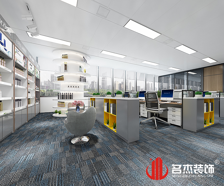 本办公室装修设计案例是美业类办公企业,是一家集化妆品研发和生产的科技型创新公司。设计团队以简约时尚的风格来作为整体的设计基调,使用黄色跳色来作为整个空间的点缀色,让空间的设计感一下子就出来了,也显得空间更加有层次感。