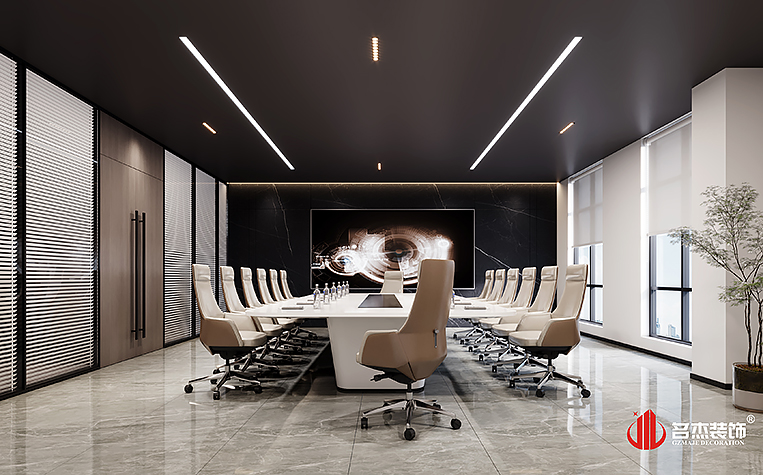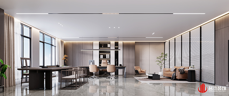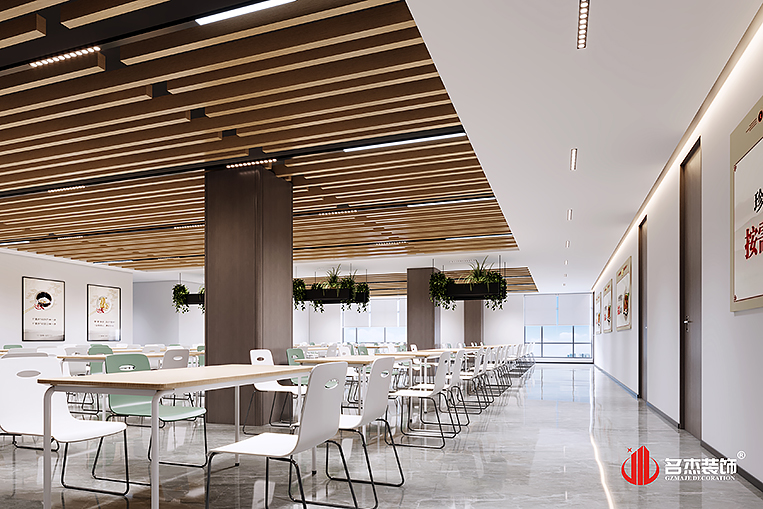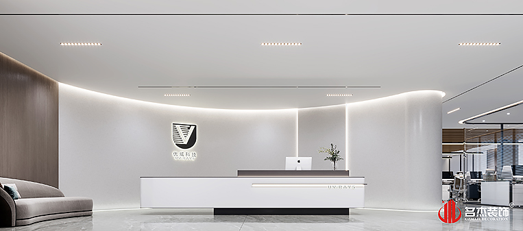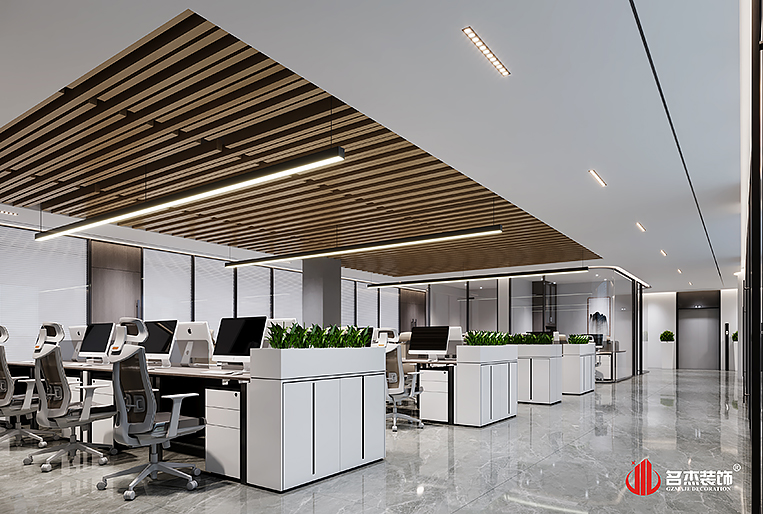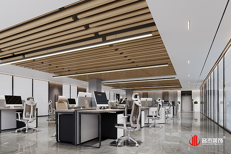 一楼大堂区域使用的是时尚风格搭配奢华的元素,让整体空间看上去更加大气时尚。在两边设置的企业文化墙以及大屏幕,可以让来访的客户迅速了解到企业的发展历程以及企业文化。而在开放办公区域则使用铝格栅天花作为空间的点缀元素,简约元素搭配出不一样的层次感。