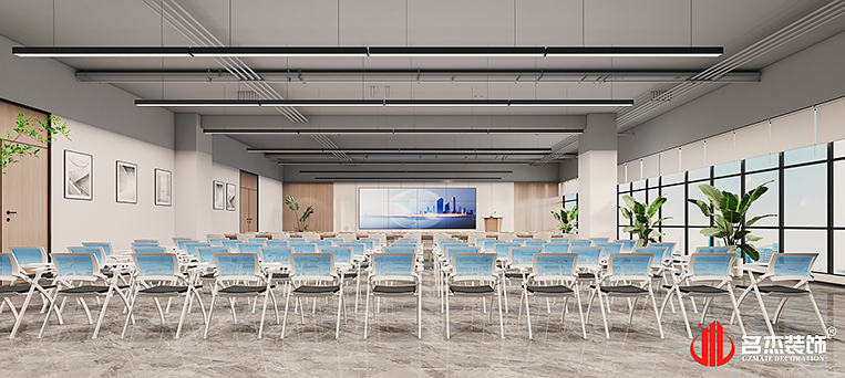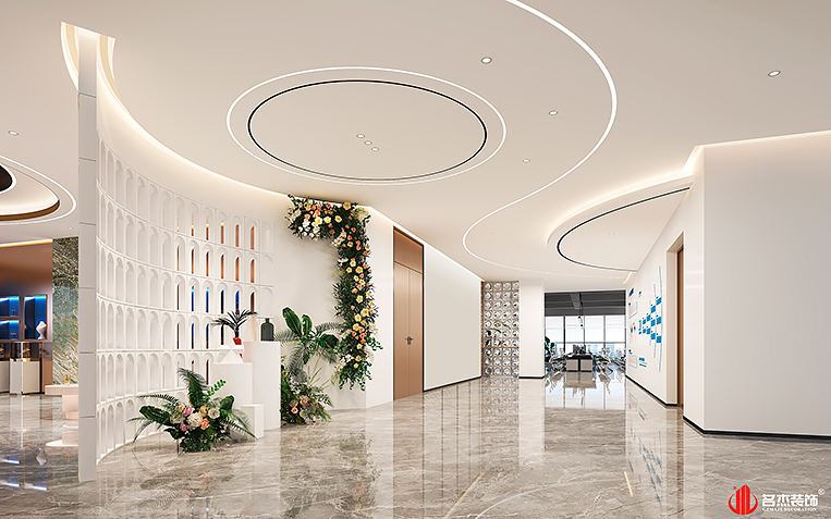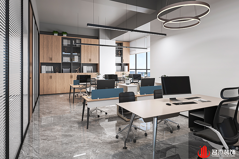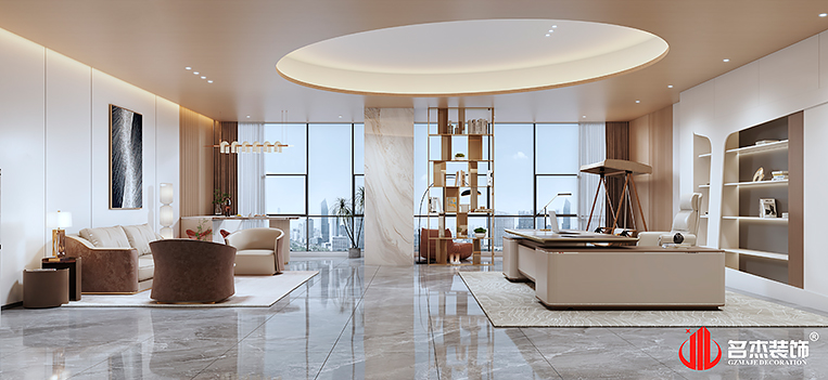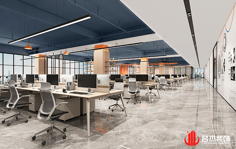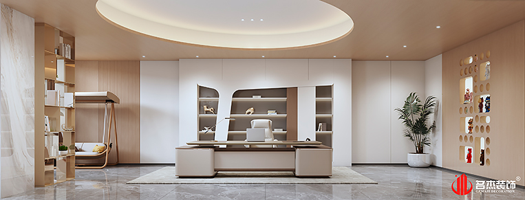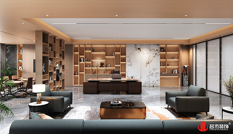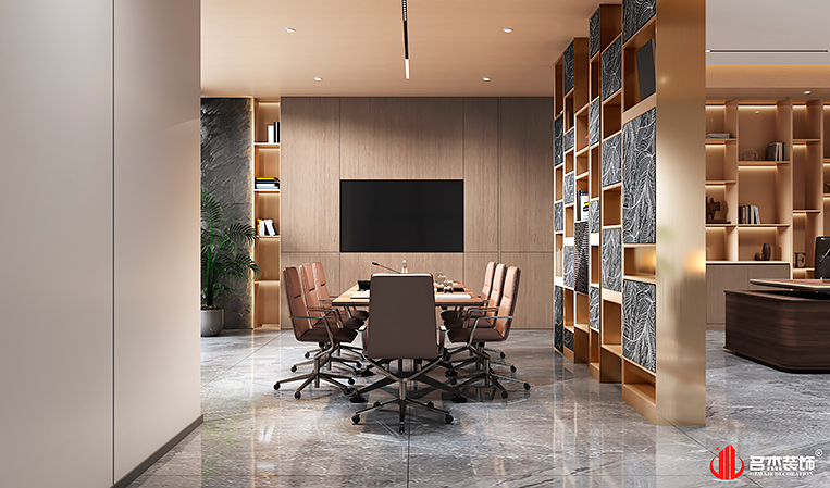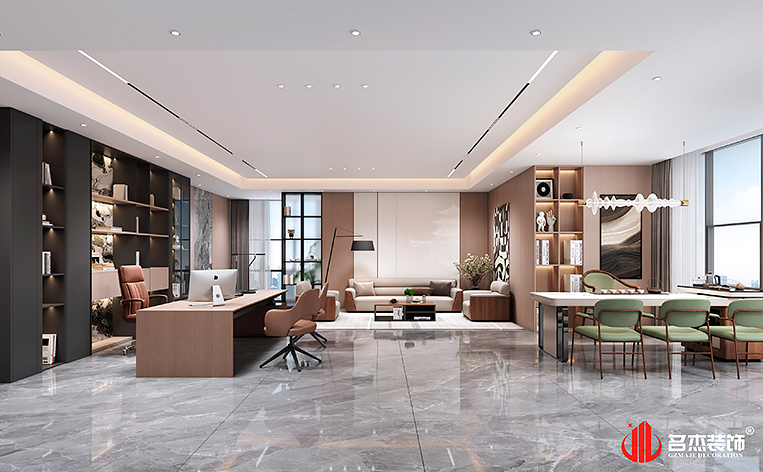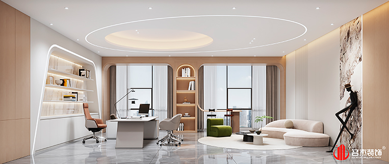 办公空间的前台结合天圆地方的设计理念,弧形的背景墙,加上层层堆叠的天花造型,很好的呈现出一个独特且有品位的集团前台。而在办公区域则是选择使用企业的LOGO色融入到整体设计中,让其企业氛围更加浓郁。在高管的办公室则是采用较为沉稳的设计风格,选择有质感的材料来定制这些高管办公室装修设计空间。#广州办公室装修#
