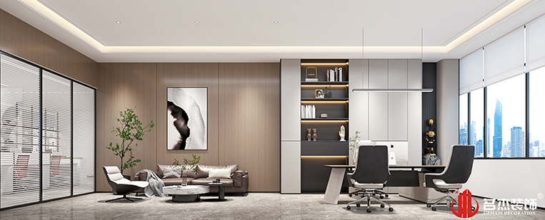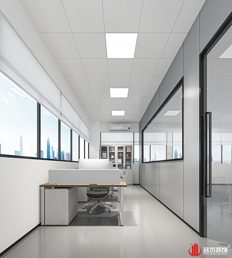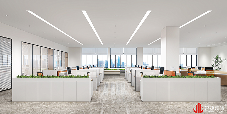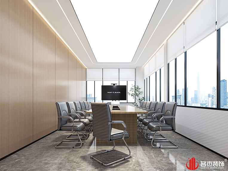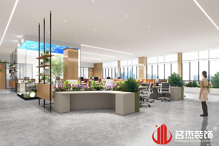 设计团队在展厅区域使用具有科技元素的蓝色,作为该空间的主导色,配合圆弧型的吊顶造型,让空间具有科技感的同时,还能具有设计层次感。而且前台区域的设计中,让企业LOGO色作为空间的点缀色,使用在前台桌子上,搭配造型感十足的吊顶,让空间更具有设计层次感。#广州办公室装修#