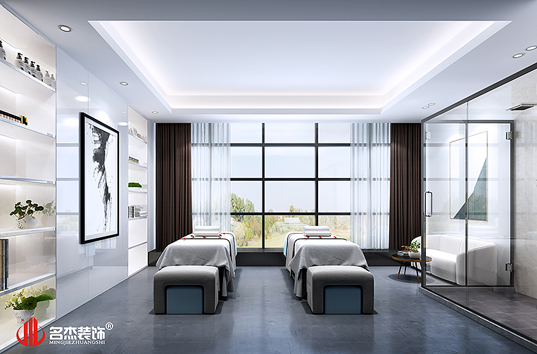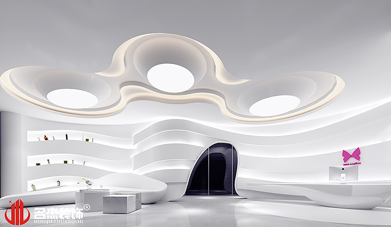 考虑到展厅为主,所以使用大量的弧线来作为整个办公室装修风格的主要元素,利用线条和弧线来打造一种流线美的美学,与企业的核心业务美容做一个呼应。