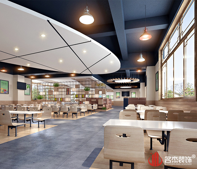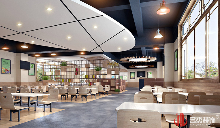 现如今人们对于饮食也有着较高要求,追求健康以及对就餐环境的严格把控。尤其学校食堂人多,所以现代简约风格整体设计实用又有美感。