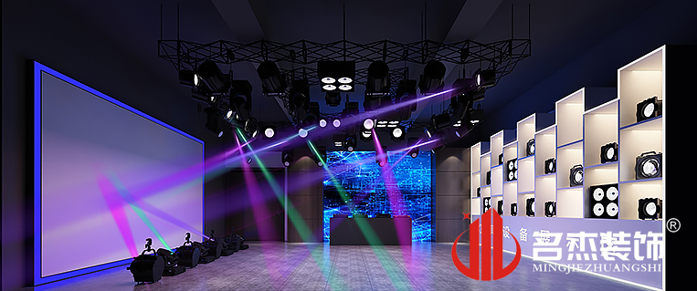 本设计案例中的企业是专舞台灯光音响设备的,设计师通过对行业的了解,以及和企业详细的沟通,了解到该企业的想法,设计出了能够展示该企业品牌的设计费方案。使用黑白灰作为设计的主基调,在其他地方也加入了点缀色来增加整体空间的设计感和时尚感。