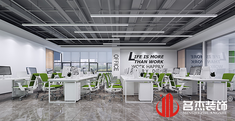 整体设计以白色作为主设计基调,加以绿色作为点缀色,让空间的绿色环保感觉一下子就出来了。而且加入圆弧形元素能够让空间更加有设计层次感。在展厅区域使用玻璃隔墙来增加整体空间的通透感,同时能够增强视觉上的观感。
