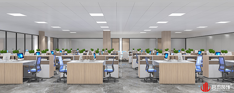 办公室装修设计空间在设计上面是采用的是科技风格为主的元素,加入科技蓝的设计元素,作为空间的点缀元素,同时也能够增加整体的科技感。对于造型的应用也是能够很容易看出来设计团队的用心程度,利用不同的造型来搭配出不一样的设计层次感。