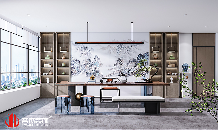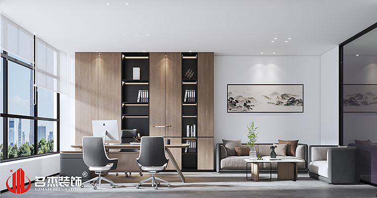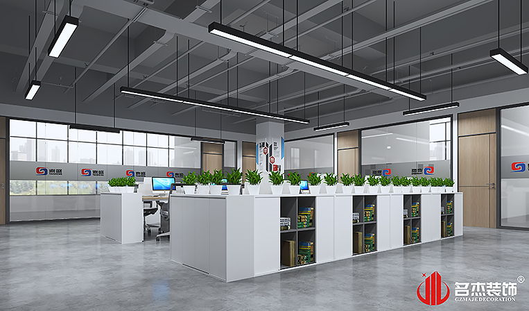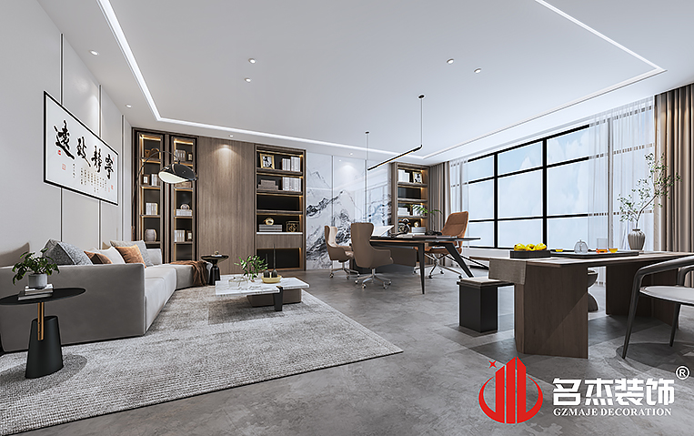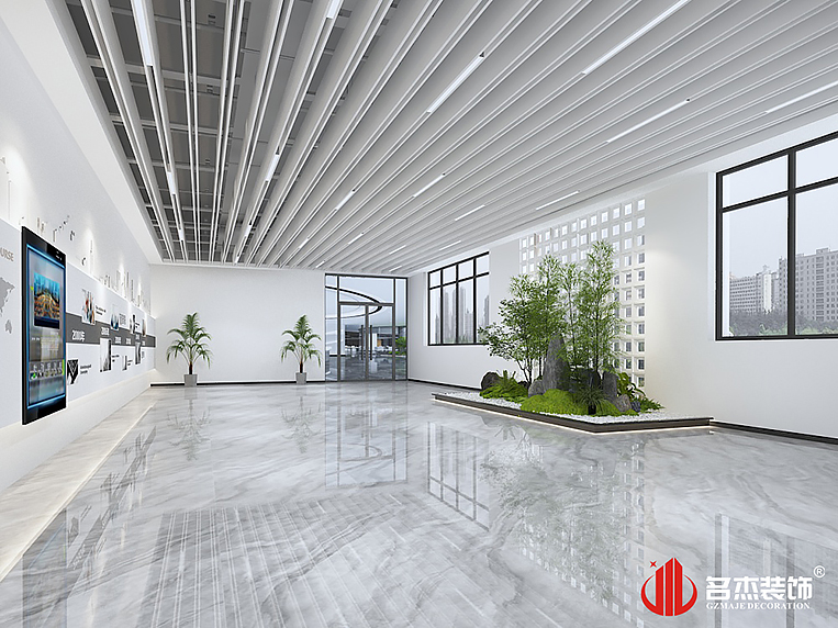 前台区域中以一种有组织的线条和弧形元素混搭的组合方式,来确保空间的多样性,并且创造出一种强烈的时尚感,赋予了空间的独特个性。在这个办公装修设计空间当中,恰到好处地使用了铝格栅作为天花吊顶的材料,通过喷白的手法,来让空间变得更加有质感,还能突出企业的设计品味。