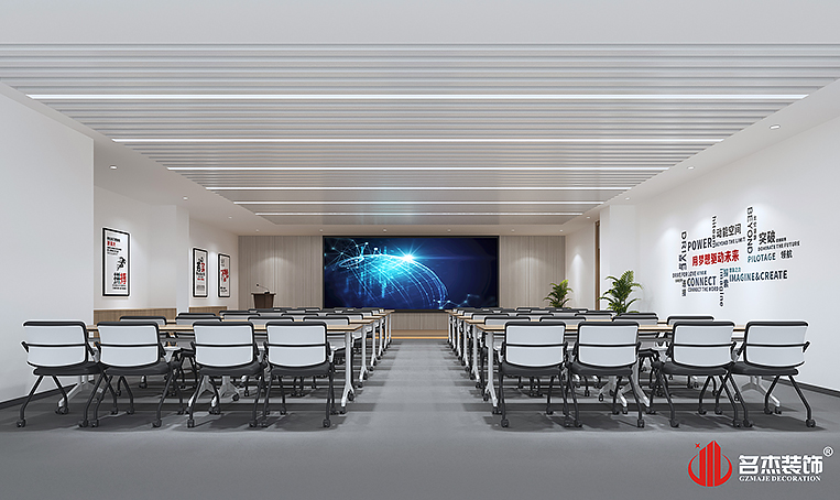前台区域使用有规律的线条和弧形元素进行混搭,创造出一种强烈的时尚感,而这样方式也出现在茶室上面,通过不规则的设计手法,辅以灯带作为装饰点缀,展示出该企业想要突破传统的想法。同时空间设计中,对于金色的使用,也是较为大胆的,多个区域中都使用到,运用恰到好处,让空间有种轻奢的氛围。