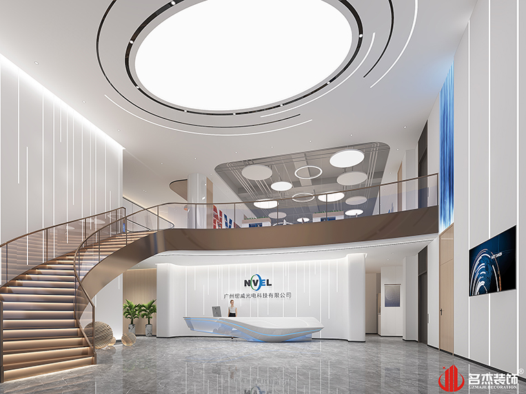 整体风格是按照时尚简约来作为空间的主打风格,加入科技元素作为点缀,让时尚简约的空间变得更具未来感,同时在空间使用企业的logo色,让空间的企业文化氛围感更加深刻,也让空间更具有未来感。在展厅区域使用弧形元素,搭配科技感,在整体设计上形成一个呼应,也突出该企业所在行业的特色,也能够给来访的客户留下深刻的印象。#广州办公室装修设计#