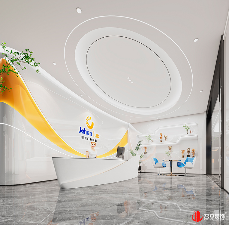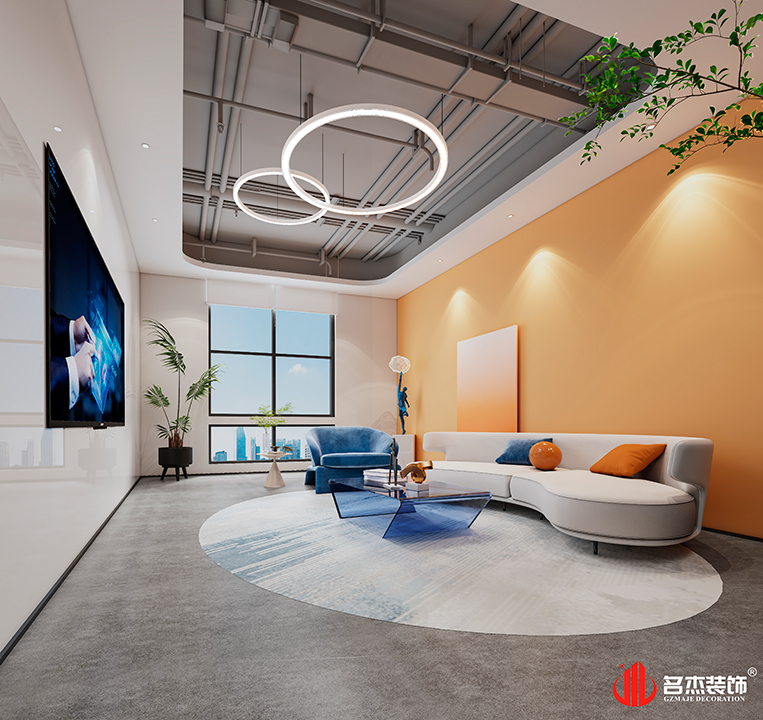 在时尚简约的风格主导下,设计团队通过在空间中加入企业的LOGO色,让空间有着浓郁的企业氛围,这种设计手法是可以让企业有着更多的文化输出,让到访的客户和在职的员工感受到来自企业的文化特色。#广州办公室装修设计#