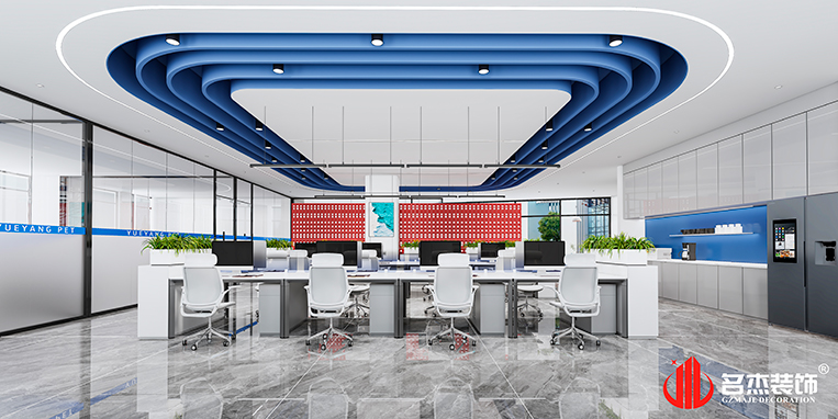 设计团队采用的时尚简约的设计风格作为这次的主打风格,将企业的LOGO——蓝色融入到整体设计当中,企业文化也能够很好地在整个办公室装修设计空间展开,让员工和来访的客户感受到来自企业文化的冲击。天花吊顶上使用撞色的设计,让空间中有着不一样的特色,区别于传统的办公装修设计空间,成就属于他们自己专属的办公室装修设计空间。#广州办公室装修设计#