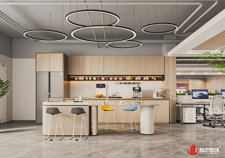 这次主要的设计风格是以时尚简约为主,加以原木色作为空间的辅导色,让其更具有活力,同时还能够让时尚简约的风格有着不一样的展现。一楼挑空的设计,让其看起来更加大气,配合大理石纹路的背景墙,加上灯光的合理运用,突出了整个空间的设计层次感。#广州办公室装修设计#