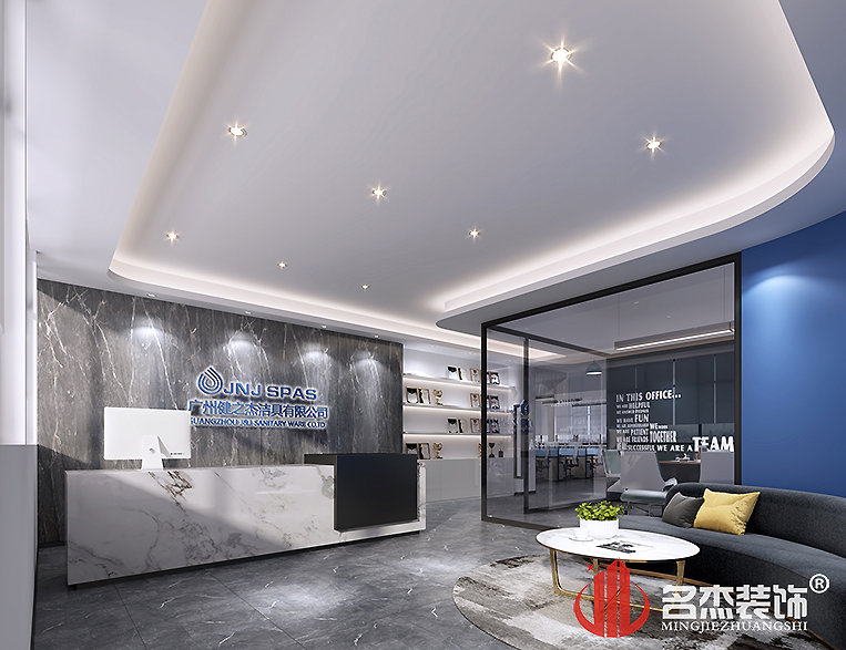 本案例是以洁具为主的企业,设计师通过沟通和了解,通过将企业LOGO的颜色加入到整体的设计当中,把企业文化和品牌意识融入到整个空间当中。同时也加入了玄关的设计元素,让整个空间显得格外的温馨