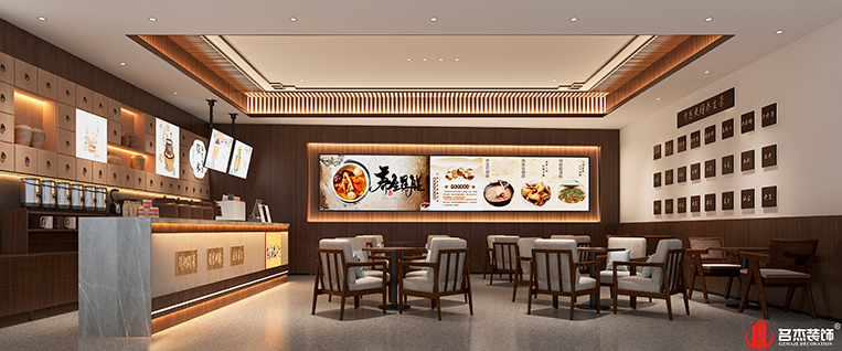 设计团队采用新中式的风格来作为这次店铺装修设计空间的主打风格,对于传统元素的应用,设计团队也是很好的将其融入到整个设计当中,在天花造型上恰当加入中国结的元素,让其能够更加的突出传统氛围。同时在外立面也加入了传统屋檐的设计手法,让传统氛围变得更加浓郁。#店铺装修设计#