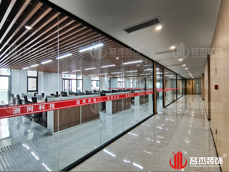 酒网科技办公定制装修项目从内到外都能够感受到浓浓的中式气息,从设计理念到施工实行,再到整体效果出来,都是由广州名杰装饰设计公司一步一个脚印踏踏实实的做出来的。广州名杰装饰在此祝贺广州酒网科技办公定制项目开业大吉!生意兴??!同时也感谢广州酒网科技有限公司对广州名杰装饰设计公司的信赖和支持。接下来一起看看广州酒网科技办公定制装修项目的完工照吧。